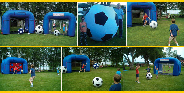 Kids can practise their accuracy with the zip in Tutor Shooter or they can zip it out to have a game right in the backyard. Use the 24" Jumbo Soccer ball or use a game size ball to test your accuracy or shoot on a goalie. Rentals can come with 24", 40" and regular size balls, please specify when booking. Have a game. Take shots on net. Great for family gatherings, Company parties and Fun Fairs. Jumbo Soccer is great for all ages. The 72" jumbo soccer ball is an additional charge, and not recommended for young children. It can be rented on it's own.